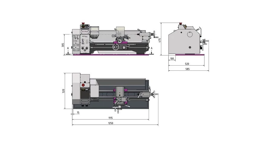 Ipari felhasználásra készült, magas minőségű és erős kialakítású, egyetemes esztergagép D240x550 mm -es munkatérrel és digitális fordulatszám kijelzővel. |