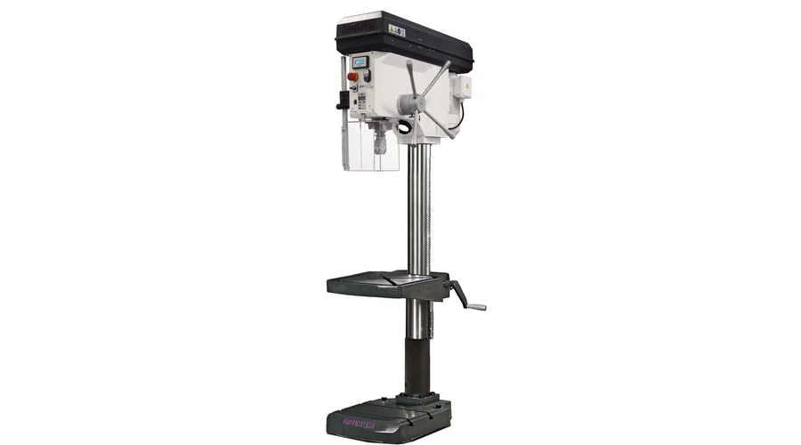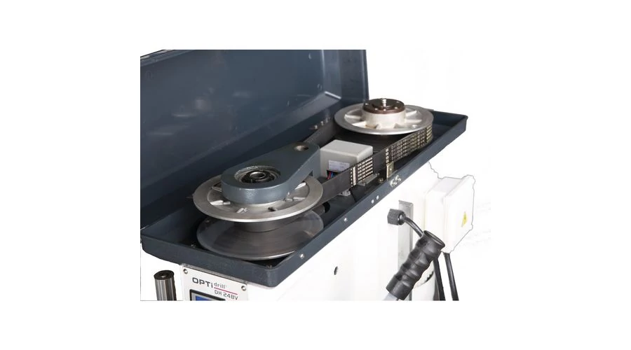 OPTIdrill DH40BV erőteljes motorral, mechanikus fordulatszámszabályzású, ékszíjon keresztül hajtott különösen sima futású főorsóval szerelt oszlopos fúrógép. |