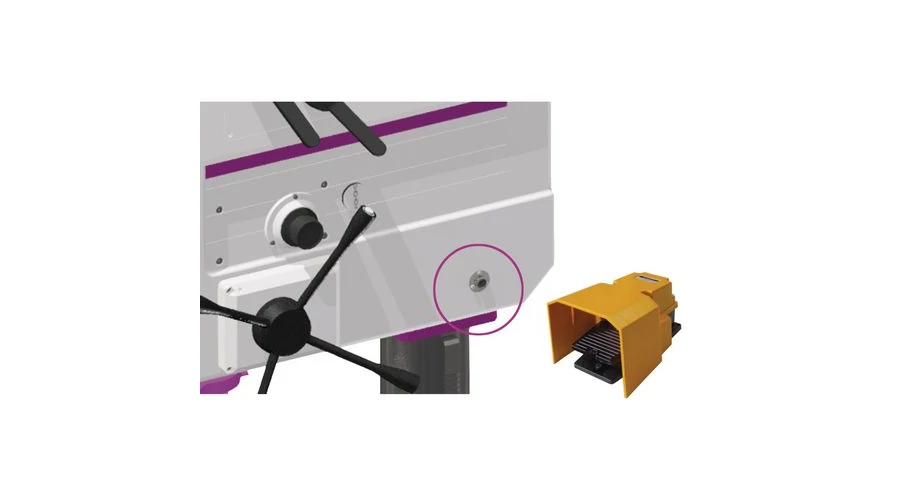 Opcionális lábkapcsoló a jobb- vagy bal irányú orsóforgatás és menetvágás közötti váltáshoz (cikkszám: 3050032).