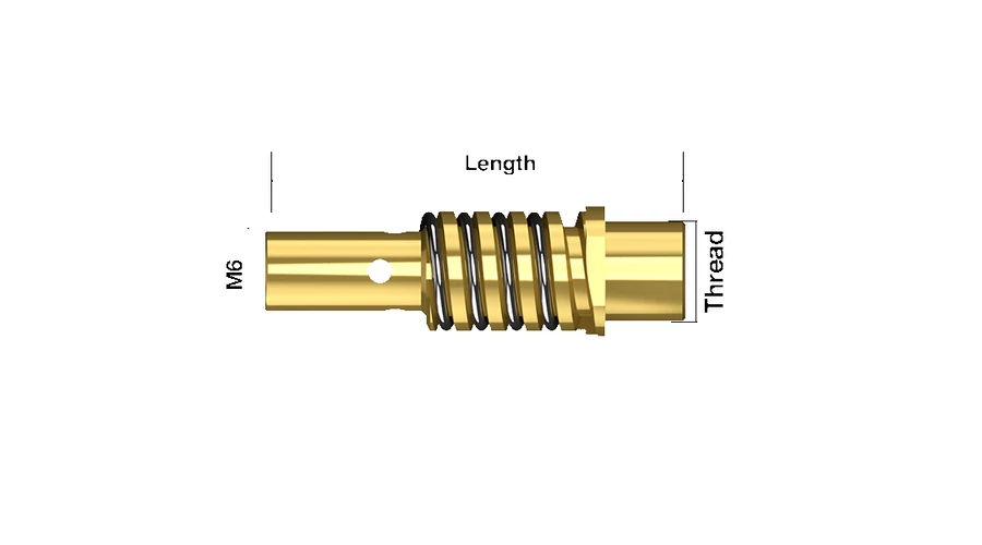 Ipari felhasználásra készült, balmenetes közdarabok hegesztőpisztolyokhoz M6-os menettel, 180 A-es kivitelben. |