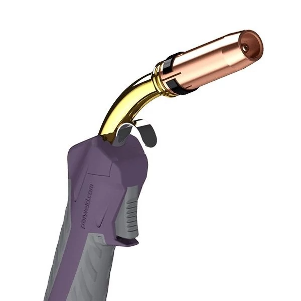 Kiváló minőségű, Co2 védőgázos, áramátadóig hűtött,hegesztőpisztoly, mely ergonómiailag kiváló Pro-Grip® fogantyúrendszerrel, integrált kettős, puha markolattal éstovább fejlesztett huzal adagolással van ellátva. A léghűtéses kábelrendszer Hyperflex, melynek köszönhetően a kábel kiváló rugalmassággal (flexibilitással) és magas hő- és kopásállósággal rendelkezik. A kábelvég-krimpelő rendszerek biztosítják a maximális vezetőképességet. Beépített csuklós összekötő rendszerrel van ellátva. 0,8-1,2 mm Co huzal vastagságig ajánlott a használata. A maximális teljesítmény elérése érdekében tartós és robosztus kialakítással tervezték.