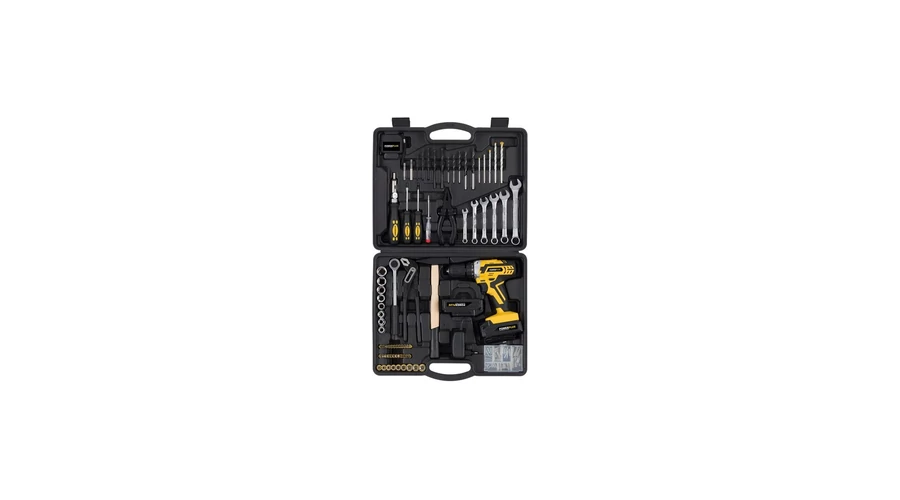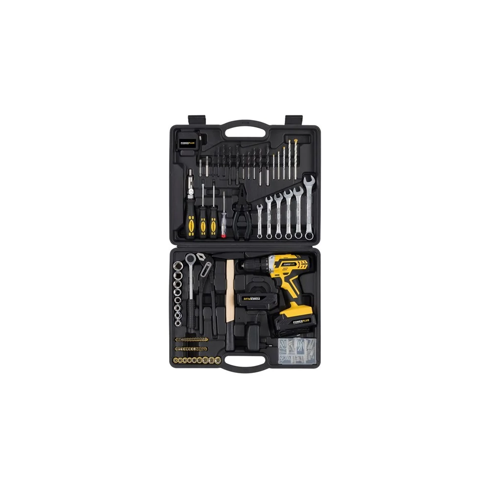 POWERPLUS Sárga akkumulátoros fúró-csavarozó (POWX00825) szerszámkészlet - 20 V/2 db Li-ion
