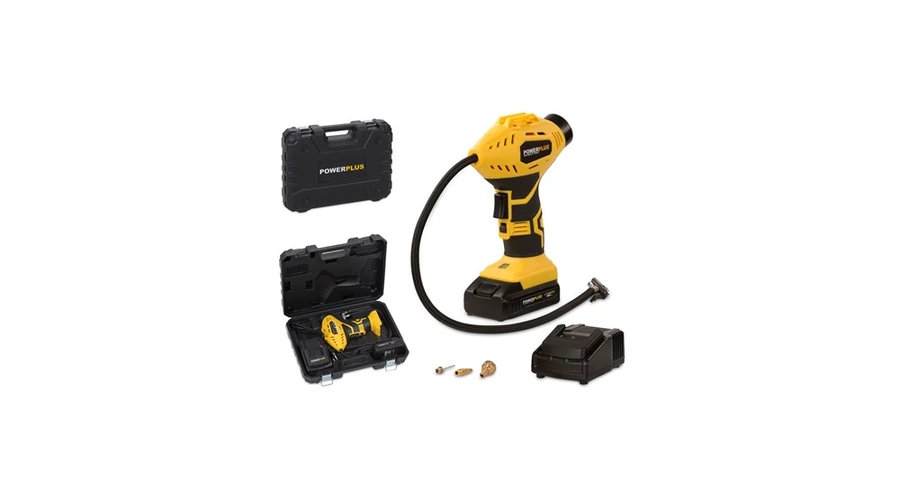 POWERPLUS Sárga akkumulátoros, kézi kompresszor (POWX1700) - 18 V