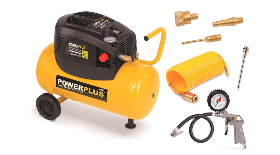 POWERPLUS Sárga kompresszor olajmentes szettben (POWX1730) - 1100 W/24 l