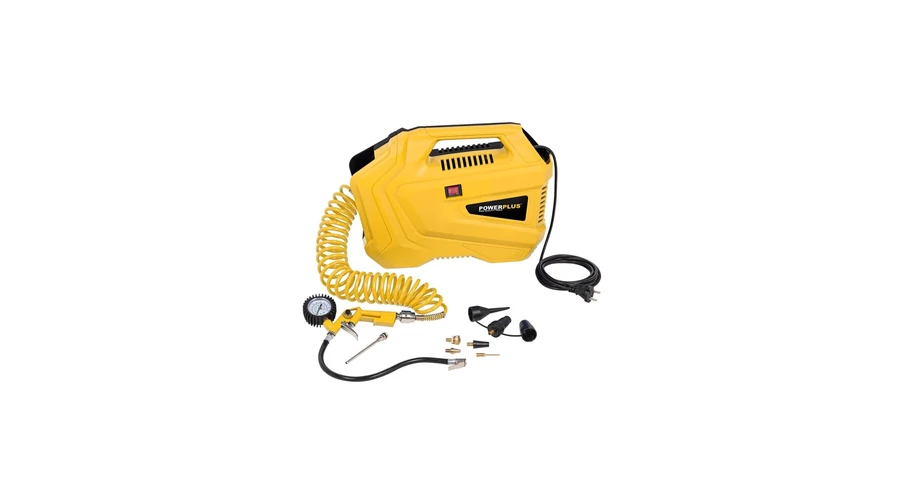 POWERPLUS Sárga kompresszor tartozékokkal olajmentes (POWX1706) - 1100 W