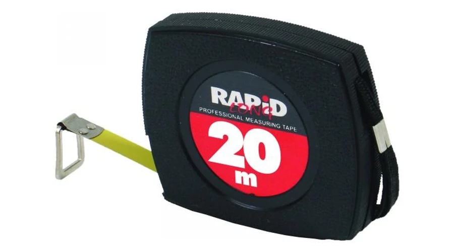 20 m hosszú, acél szalagos mérőszalag zárt kialakítással. |
