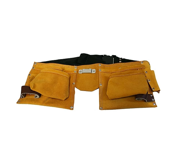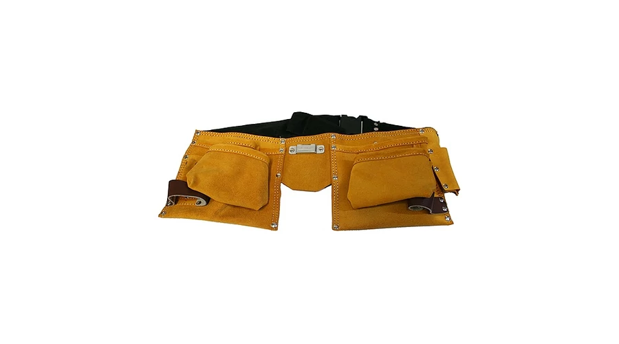 Minőségi, bőr szerszámtartó övtáska 2 db kalapács, vagy egyéb tartóval, szegzsebekkel és egyéb tárolási lehetőségekkel. Állítható, fém csattal és kétoldalas kivitellel van ellátva.