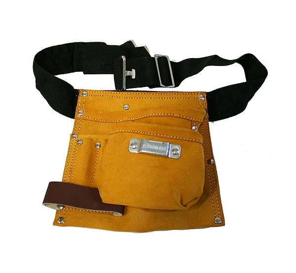 Erős, bőr szerszámtartó övtáska sárga színű kivitelben. |