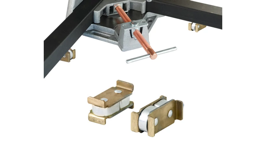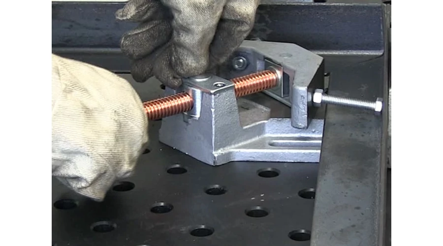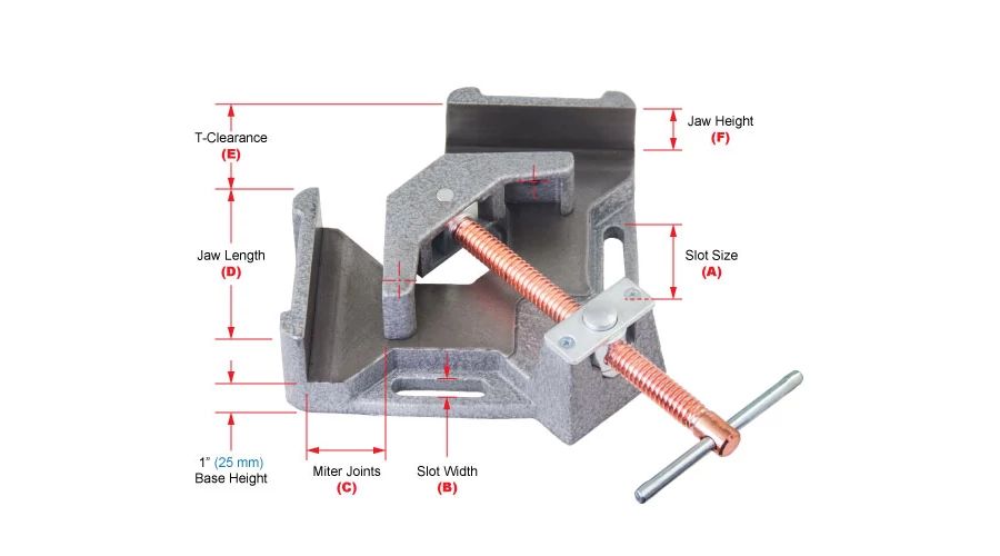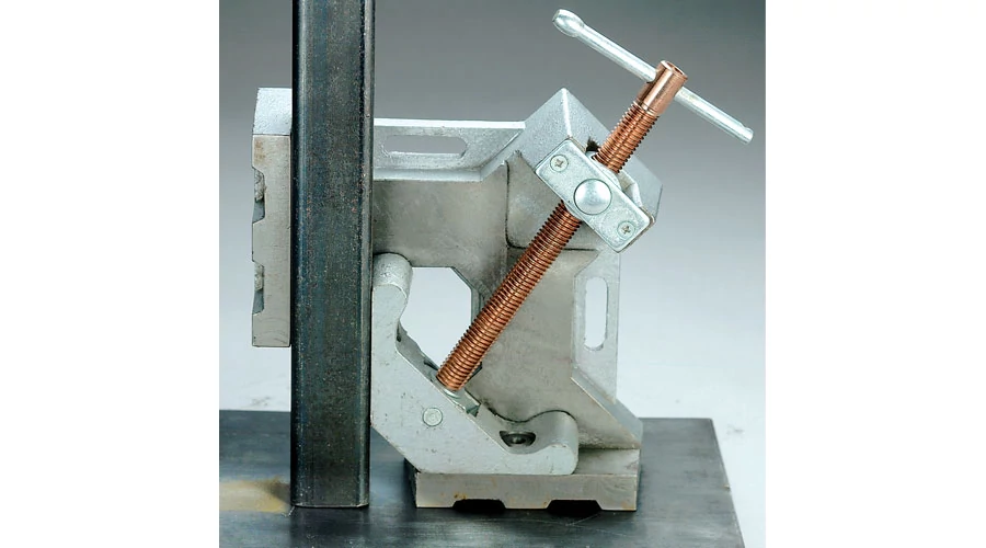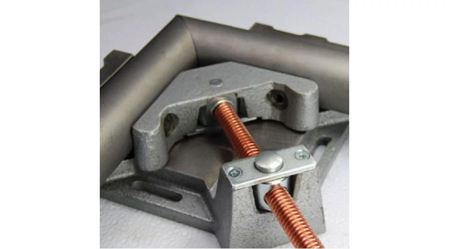 Megmunkált öntöttvasból készült sarokszorító. A megmunkált külső pofák a felső csatlakoztatáshoz használhatók. Gyorsrögzítő csavarral van felszerelve a gyors és hatékony munkavégzés érdekében. Fokozott hozzáférhetőség a támasztó csavaroknak előkészített furatokhoz. Két különálló, mágneses támasztó egység segít az alátámasztásban és szintezésben, a hosszabb munkadarabok esetén.