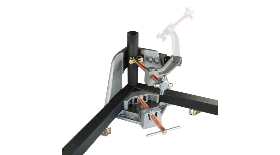 Gyorsrögzítő csavarokkal és lengőkarral ellátott 3 tengelyes sarokszorító satu, 3 tengelyű munkadarabokhoz. Pozícióban tartja a munkadarabokat elengedés közben, ezzel minimalizálva a torzulást. A lengőkar segítségével könnyebben eltávolítható a munkadarab. 2 gyorsrögzítő csavar tartozik hozzá. Ívelt karral van ellátva a stabilabb megfogás és a hozzáférhetőség érdekében, nagyobb munkadarabok esetén is. Két különálló, mágneses támasztó egység segít az alátámasztásban és stabilizálásban, a hosszabb munkadarabok esetén.