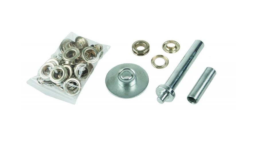 10 részes takaróponyva gyűrűző készlet. A készlet tartalmazza a ponyvakarika beütőt és a ponyvakarikákat is. |