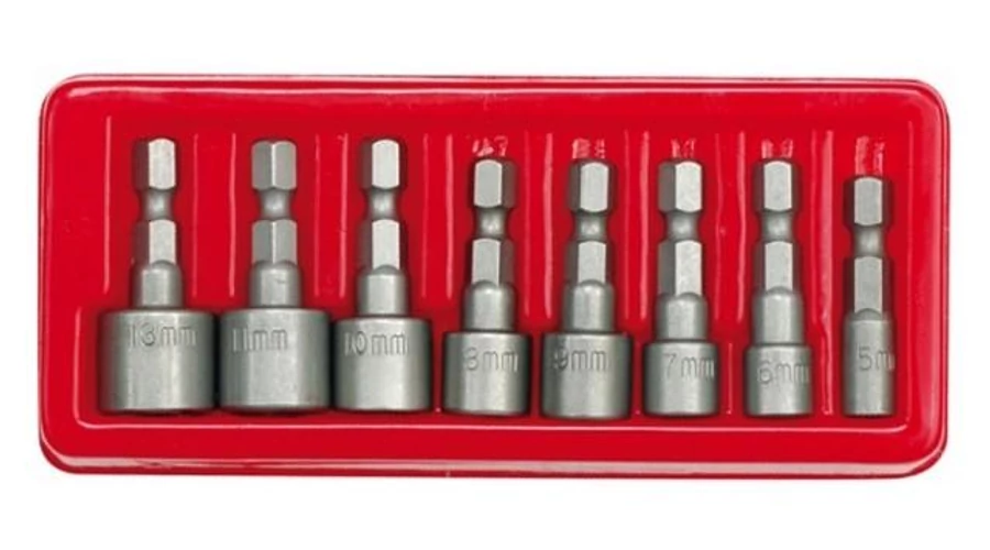 Minőségi behajtószár készlet 8 db különböző méretű behajtószárral. A készlet műanyag tároló tálcát is tartlamaz.