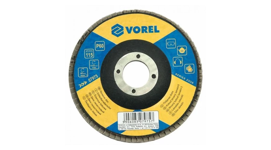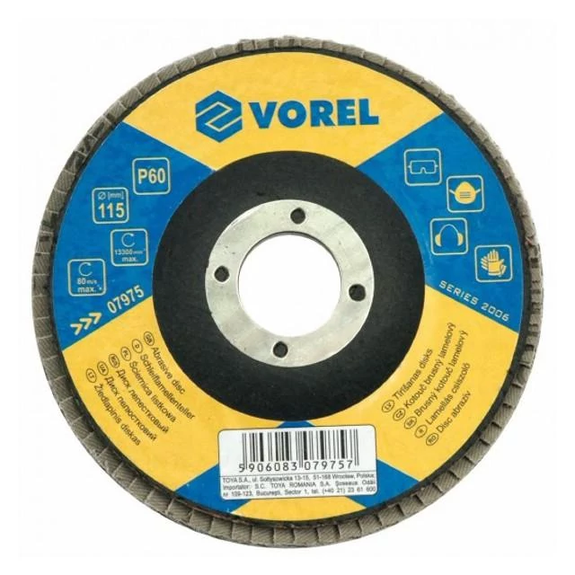 VOREL Lamellás csiszolótárcsa - univerzális/115x22,2/P120