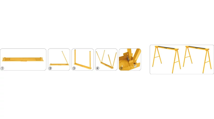 Összecsukható, fém támasztóbak párban, 200 kg-os terhelhetőséggel. |