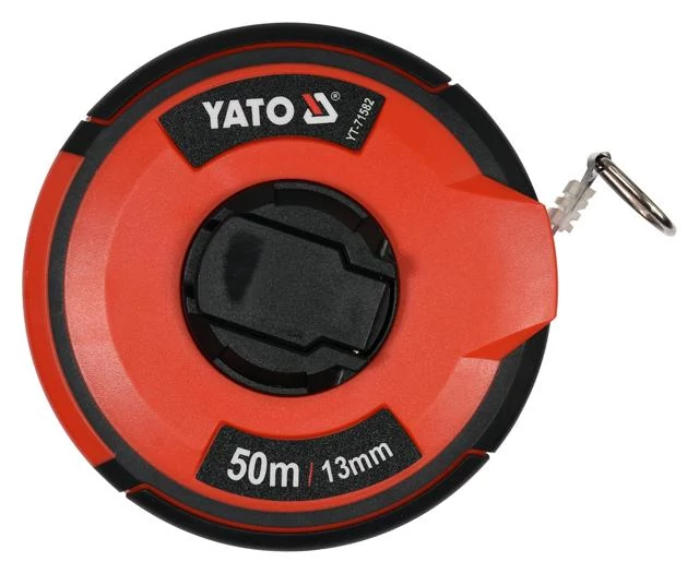 50 m hosszú acél szalaggal ellátott mérőszalag.