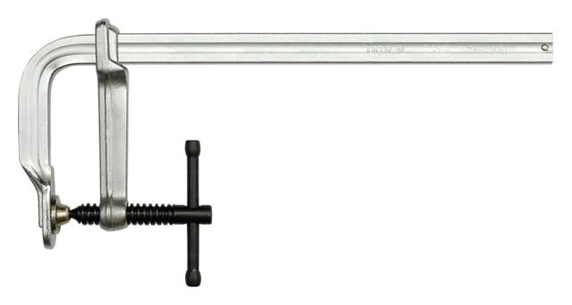 400 mm hosszú, gyorsan állítható, kovácsolt acélból készült asztalos szorító menetes rögzítő csavarral. Szorító pofa mélysége 120 mm.