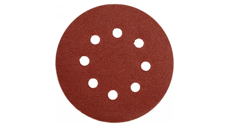 125 mm átmérőjű, tépőzáras, 8 lyukas fíbertárcsa 100-as szemcsesűrűséggel, amely ideális fém, fa és műanyag felületek csiszolására, hegesztési varratok és sorja elsimításához, valamint minden fémes felület rozsdátlanításához és csiszolásához. A készlet 5 db tárcsát tartalmaz.