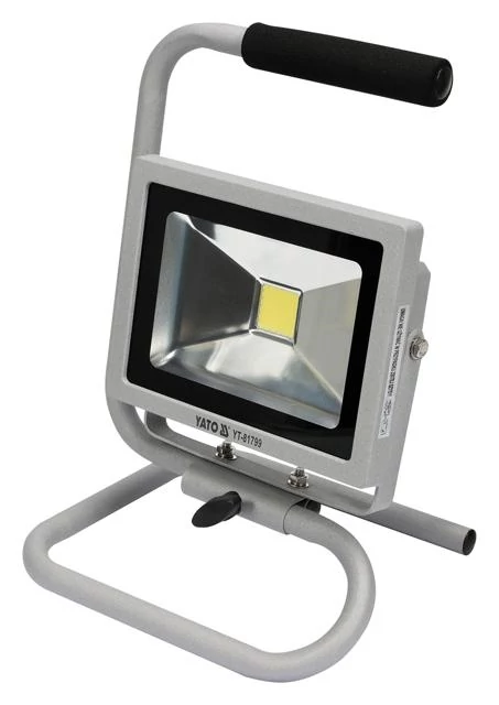 Hordozható, professzionális, LED-es fényszóró, amely megnövelt tartóssággal rendelkezik. Az elismert Epistar márka erős COB LED diódája 1400 lm magas fényáramot biztosít. Jelentősen megnövelt ütésállósággal bír a hagyományos, halogén lámpákhoz képest. Kevésbé érzékeny a véletlen ütődésekre és a leesésre, amelyek gyakran előfordulnak egy műhelyben vagy egy építkezésen. A lámpatest szilárd, porszórt, alumínium házzal rendelkezik, amely garantálja a megfelelő hőelvezetést a LED modulból, miközben szebb esztétikai megjelenést is biztosít. A vastag és tartós üveg védi a diódát a külső tényezőktől, a szennyeződésektől és a mechanikai sérüléstől. Az IP65 magas fokú védelme biztosítja a por és víz behatolás elleni védelmet. A stabil keret biztosítja a használat biztonságát, továbbá a masszív, csúszásmentes fogantyú lehetővé teszi a fényszóró kényelmes átadását is. A lámpatest 1,8 m hosszú gumi kábellel és villás dugóval van ellátva. Professzionális használatra tervezett világító eszköz, amelyet műhelyekben vagy építési területeken használnak leginkább. Nagyszerűen működik minden területen, ahol hordozható fényforrásra van szükséges.