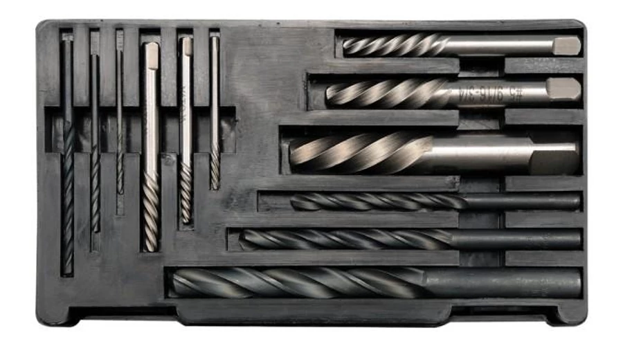 Minőségi és profi kivitelben készült sérült vagy törött csavarok kiszedésére tervezett, 12 db-os szerszámkészlet M3 - M24 (1,8 - 10,3 mm) HSS fúrókkal. 1,4 - 15 mm méreten belül használható, precíz és erős anyagból készült szerszámok.