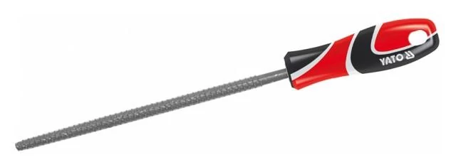 Acélból készült, 250 mm hosszú kerek ráspoly fához.