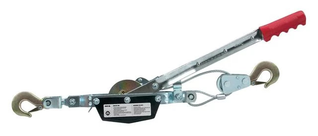 Kézi meghajtású csörlő acélból vízszintes mozgatásra. 1020 kg-os súlyt képes mozgatni kb. 3 méteres távolságban. Kialakítása miatt nem alkalmas súlyok függőleges emeléséhez.
