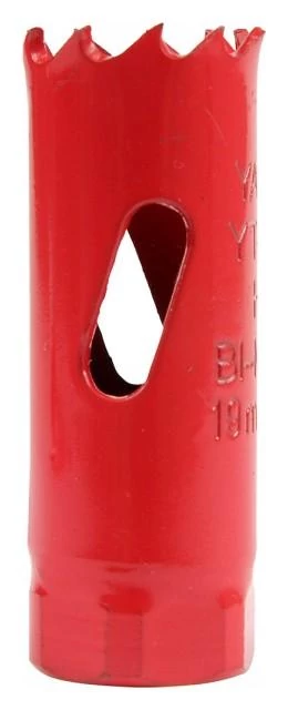 Minőségi, bimetál körkivágó 19 mm-es átmérővel, profi felhasználásra fára és fémre.