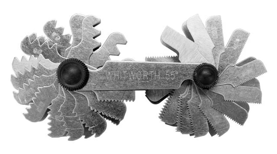 Whitworth és Metrikus menetek beazonosítására alkalmas 52 kihajtható és rögzíthető, horganyzott acéllemezből készült lemezfésű. Whitworth méretek: 4, 4.5, 5, 6, 7, 8, 9, 10, 11, 12, 13, 14, 15, 16, 18, 20, 22, 24, 25, 26, 28, 30, 32, 36, 40, 48, 60, 62 mm Metrikus méretek: 0.25, 0.3, 0.35, 0.4, 0.45, 0.5, 0.6, 0.7, 0.75, 0.8, 0.9, 1.0, 1.25, 1.5, 1.75, 2.0, 2.5, 3.0, 3.5, 4.0, 4.5, 5.0, 5.5, 6.0 mm