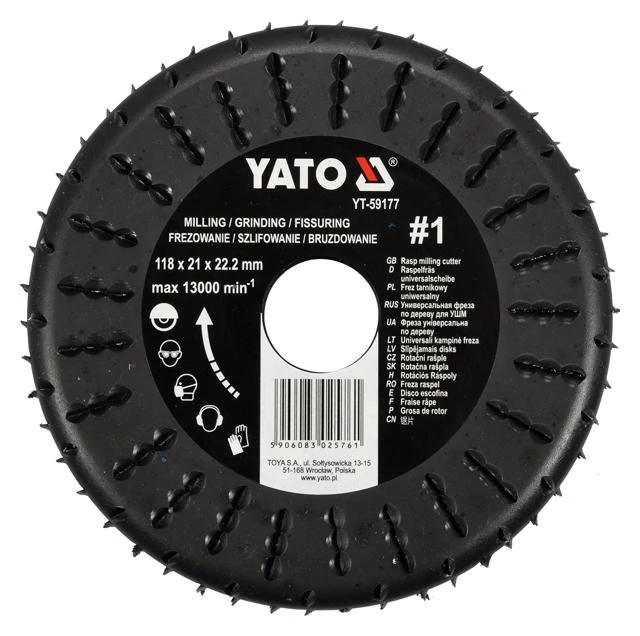 YATO Ráspolyos vágótárcsa profi kialakítással, mely nagy pontossággal teszi lehetővé a marást, élletörést, tisztítást, illesztések finomítását, elektromos szerelvények kialakítását és egyéb, hasonló feladat precíz kivitelezését.