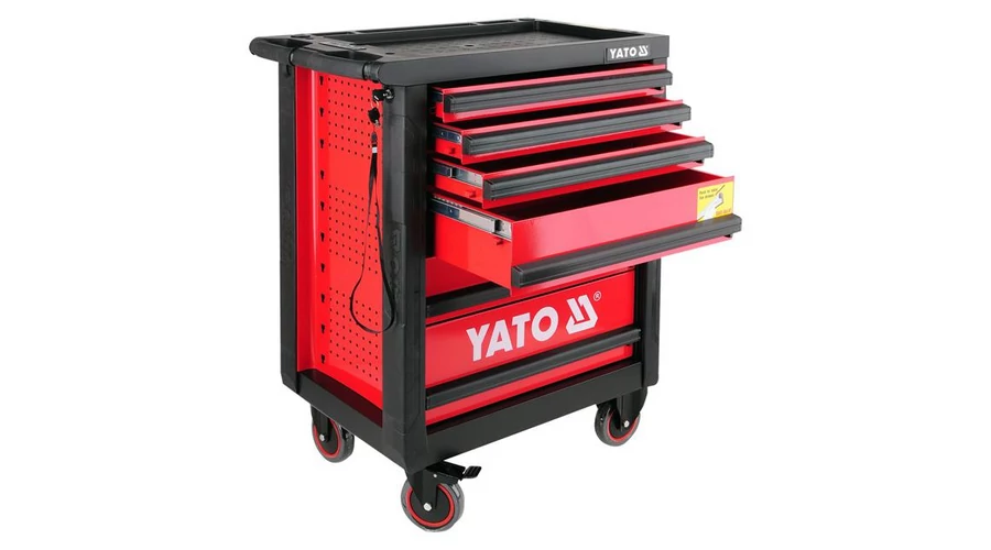 YATO Profi szerszámkocsi 958x766x465 mm-es méretben, 6 db fiókkal, központizárral, nagy teherbírással és polipropilén munkalappal. |