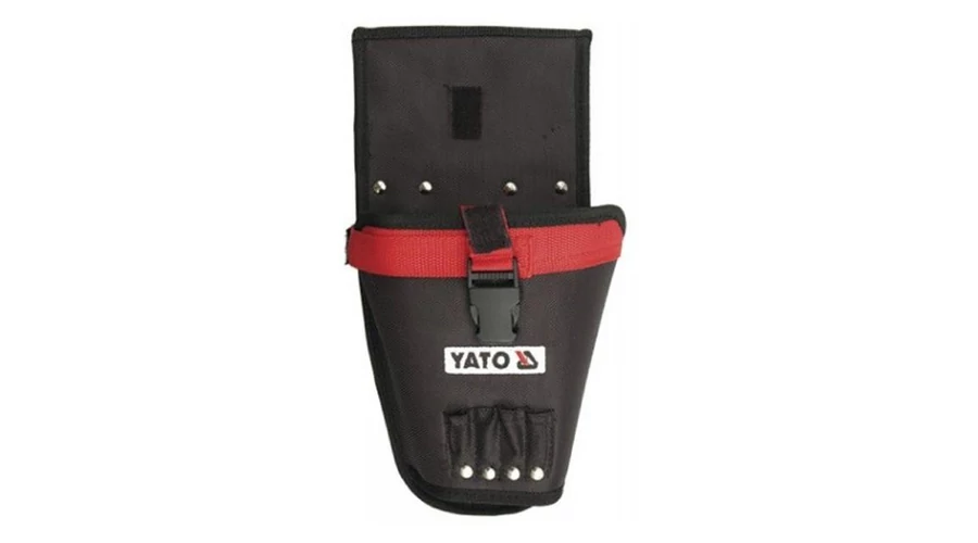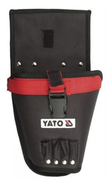 Merevített falú zsebbel ellátott tartóerszény vastag nylon szövetből, kisebb fúrógép, csavarbehajtó vagy csavarhúzó tárolására. A fém szegecsekkel megerősített varratok növelik az élettartamát.