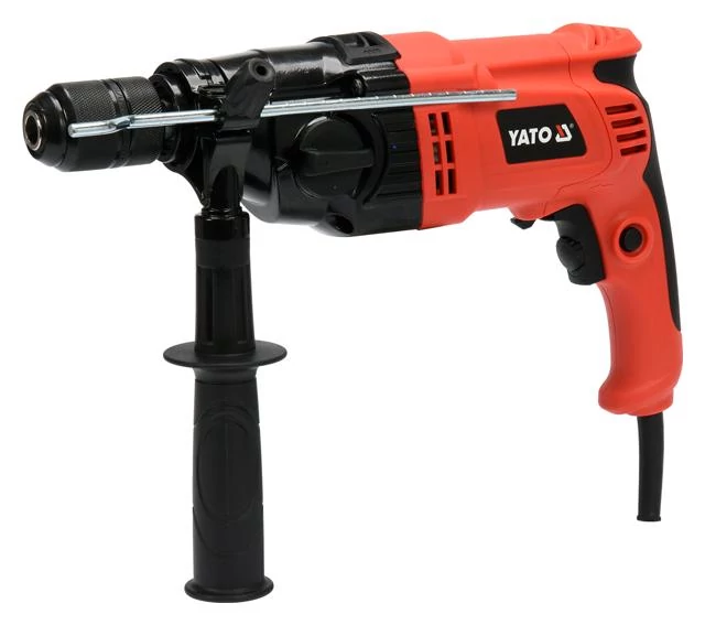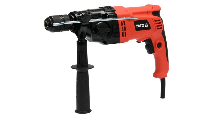 YATO gyorstokmányos ütvefúró, változtatható sebességgel, nagy teljesítménnyel, valamint 3 m kábellal és fogantyúval szerelve. |