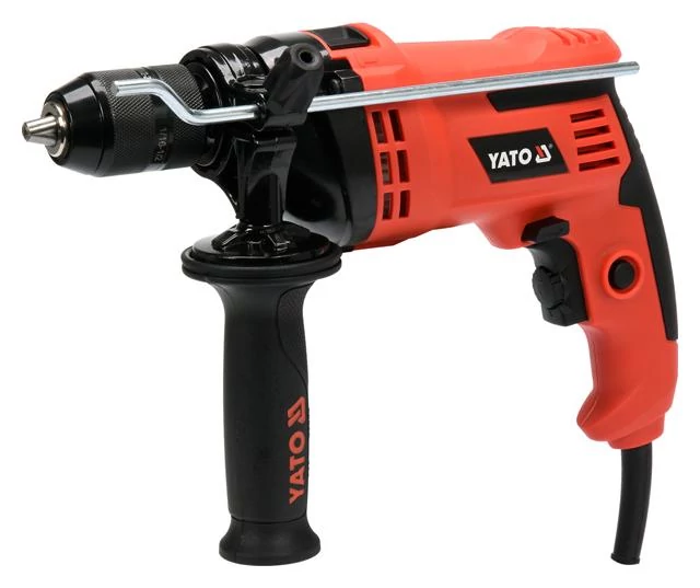 YATO gyorstokmányos ütvefúró, változtatható sebességgel, valamint 3 m kábellal és fogantyúval, speciális mélységmérővel szerelve. |
