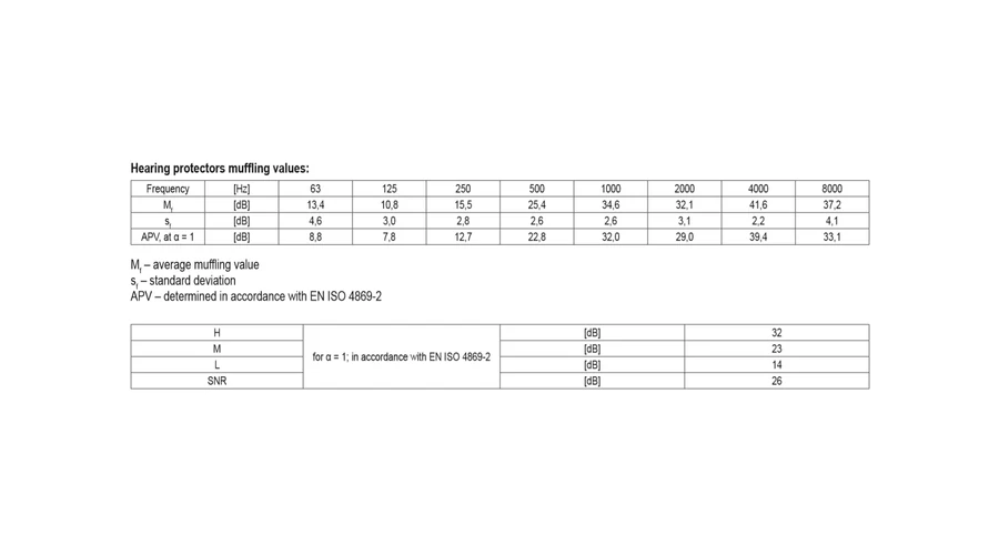Zajszűrős fülvédő a nagy zajjal járó munkafolyamatokhoz. SNR 26 dB zajszűrési érték. Nagyüzemi körlülmények között, vagy nagy zajjal járó munkafolyamatok közben megvéd a fülkárosodástól és a kellemetlenül hangos zajoktól. A fülvédő műanyag, nyomó rugóval van ellátva a fejtetőnél, valamint tömítőpárnával van kibélelve a kényelem érdekében. A tömítőpárna anyaga rugalmas, elasztikus hab. Mérete az általános fejméreteken belül univerzális.