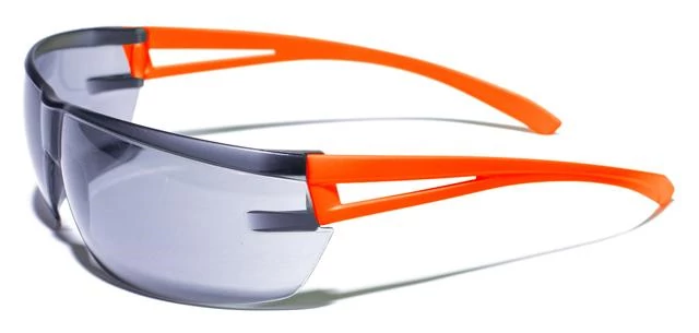 Műanyagból készült, narancs színű kerettel ellátott védőszemüveg, karcálló és páramentes felületű, füstszínű lencsékkel. Véd az UV sugárzás ellen és teljes körű panorámát biztosítanak keret nélküli, polikarbonát lencséi. Megfelel a CE követelményeknek.